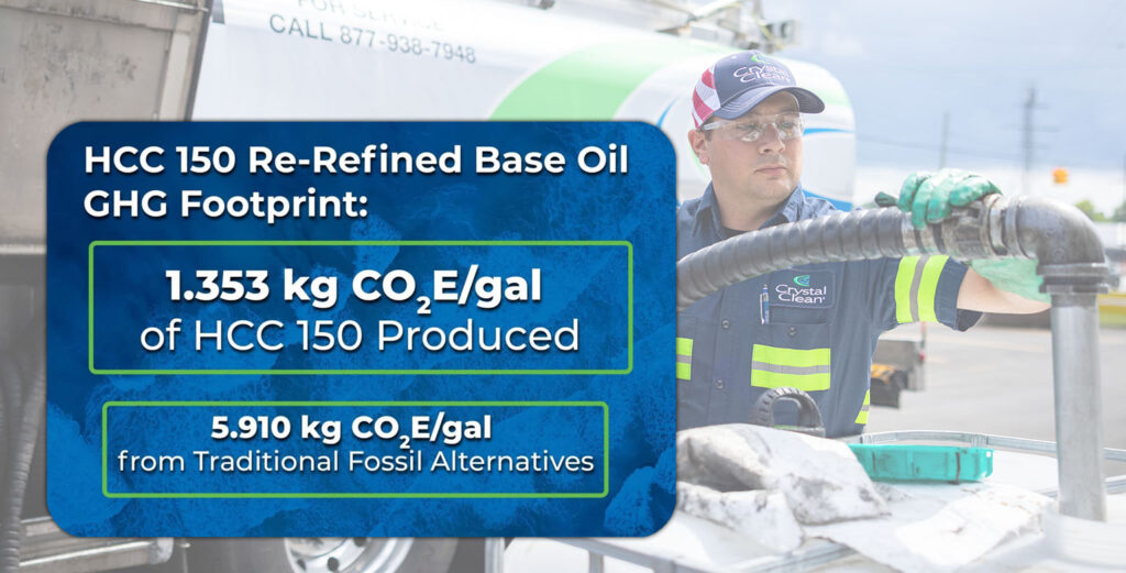 Crystal Clean’s used oil management program provides a complete, environmentally responsible solution for the collection, transport, and re-refining of used oil. Our state-of-the-art re-refinery transforms collected oil into high-quality Group II base oils and co-products, helping reduce waste while supporting a true circular economy. With 77% lower greenhouse gas emissions compared to virgin base oils, our re-refined products offer a smarter, more sustainable option for your operation.