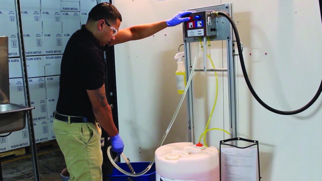 The Infinity Soap Station is a ready-to-use, fully sealed system using a metered soap dispenser to ensure a consistent dilution. It utilizes super concentrated cleaning agents to deliver maximum cleaning power with minimal hassle. The soap station can be easily to connected to local water supply and takes up minimal floor space, allowing it to be placed almost anywhere. This station was designed with the goal of making cleaning quicker and easier without sacrificing cleaning power.